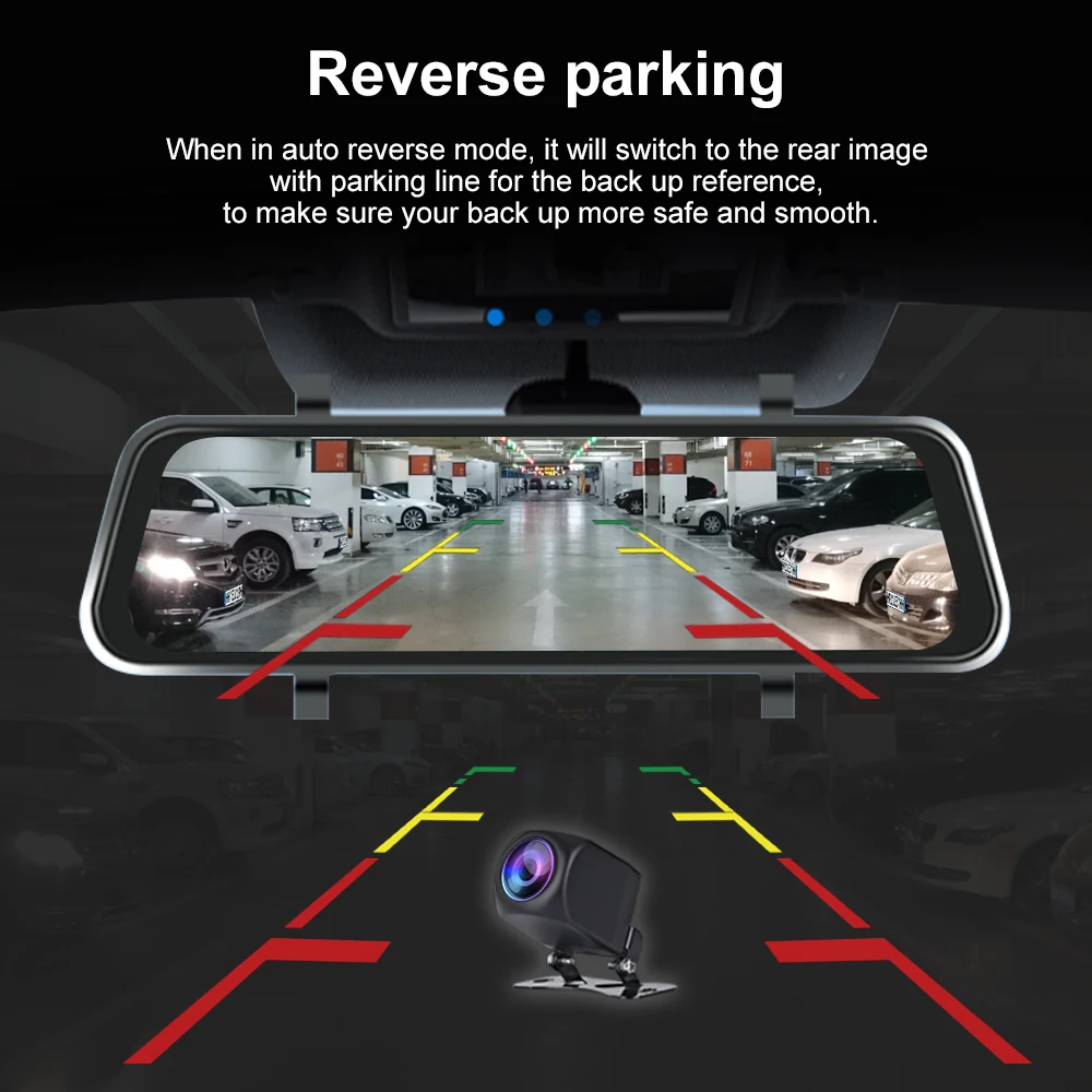 Rear View mirror Dash Camera with Android Auto/Carplay/Mirrorlink.