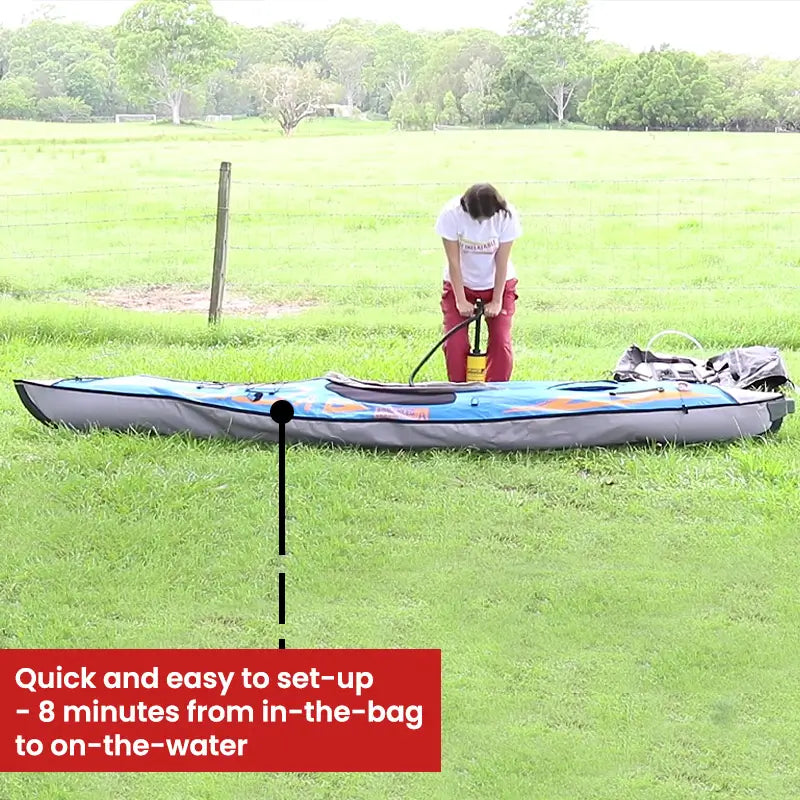 This 4m long 1-person inflatable kayak is great for long legs and long trips. The huge 204kg capacity and lots of deck space allow you to stow gear for multi-day expeditions, and the supportive seat and foot brace are comfortable all day. Stable, fast, and with beautiful tracking, the AdvancedFrame Expedition Elite is a pleasure to paddle.