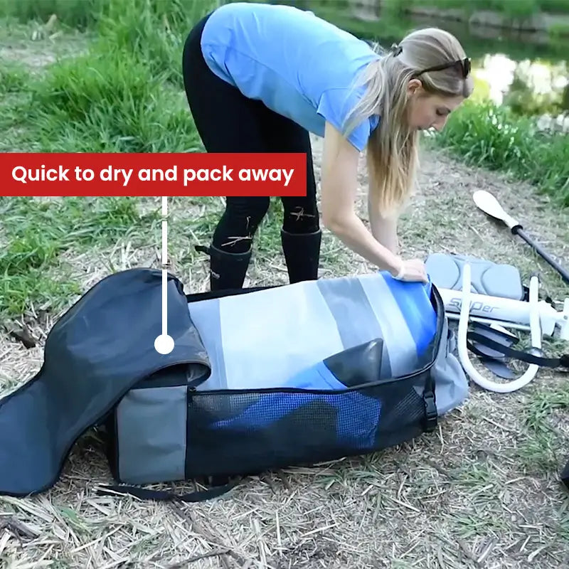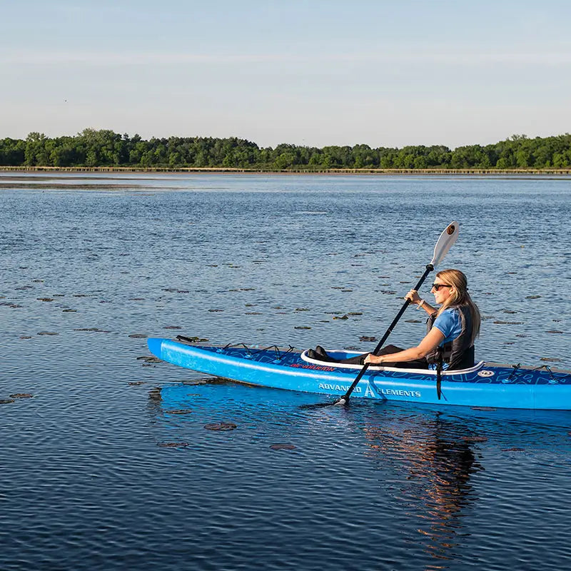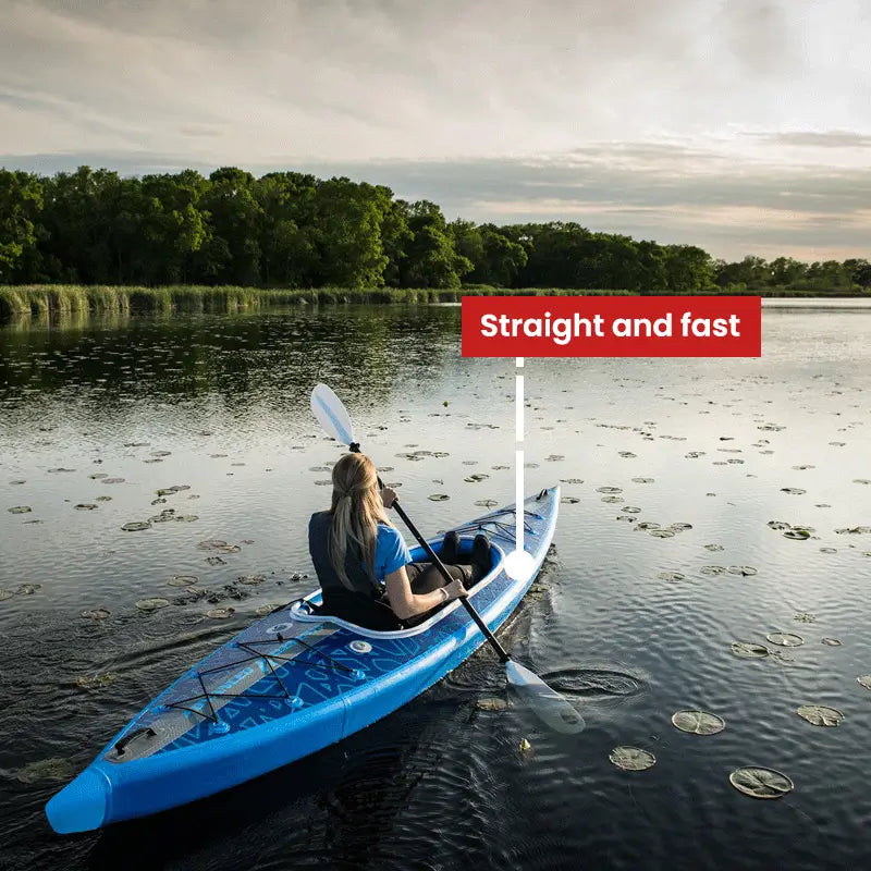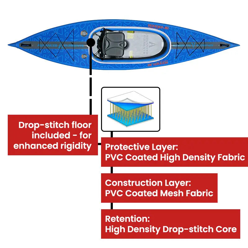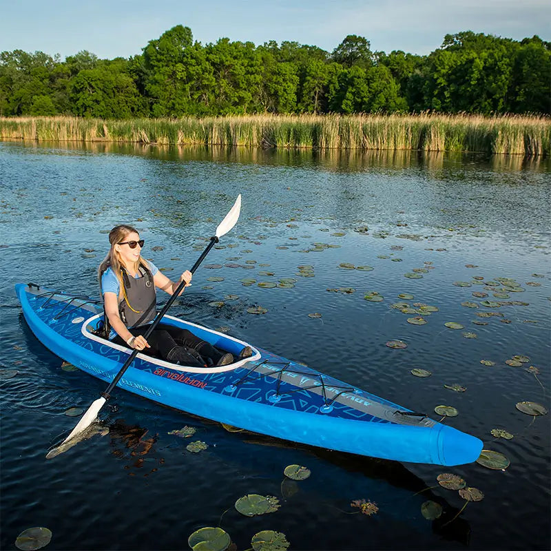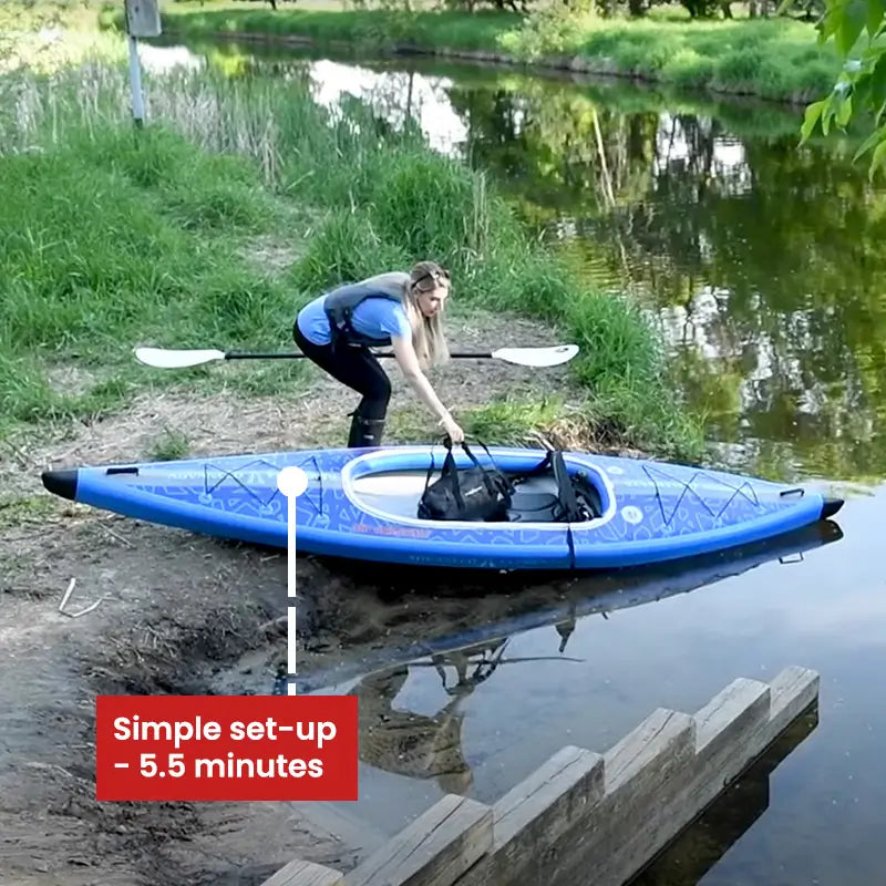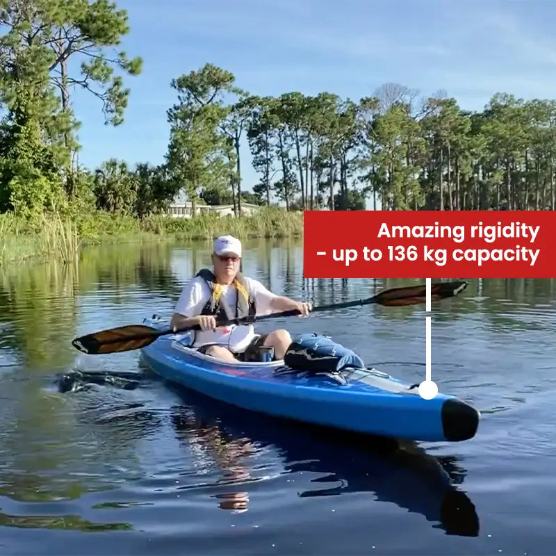 Finally, a 1-person full drop-stitch inflatable kayak that has been designed with a low profile so that it paddles like a kayak, not a canoe. It’s very stable and has a wide, open cockpit for easy entry and exit. You will get excellent rigidity and performance right up to the 136kg capacity.