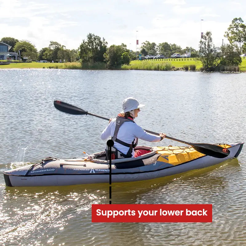 The high-backed lumbar seat includes an inflatable cushion in the lumbar that you can blow up or release as you are paddling, as well as 5cm of high-density foam to cushion your bum. Compatible with all AdvancedFrame models.