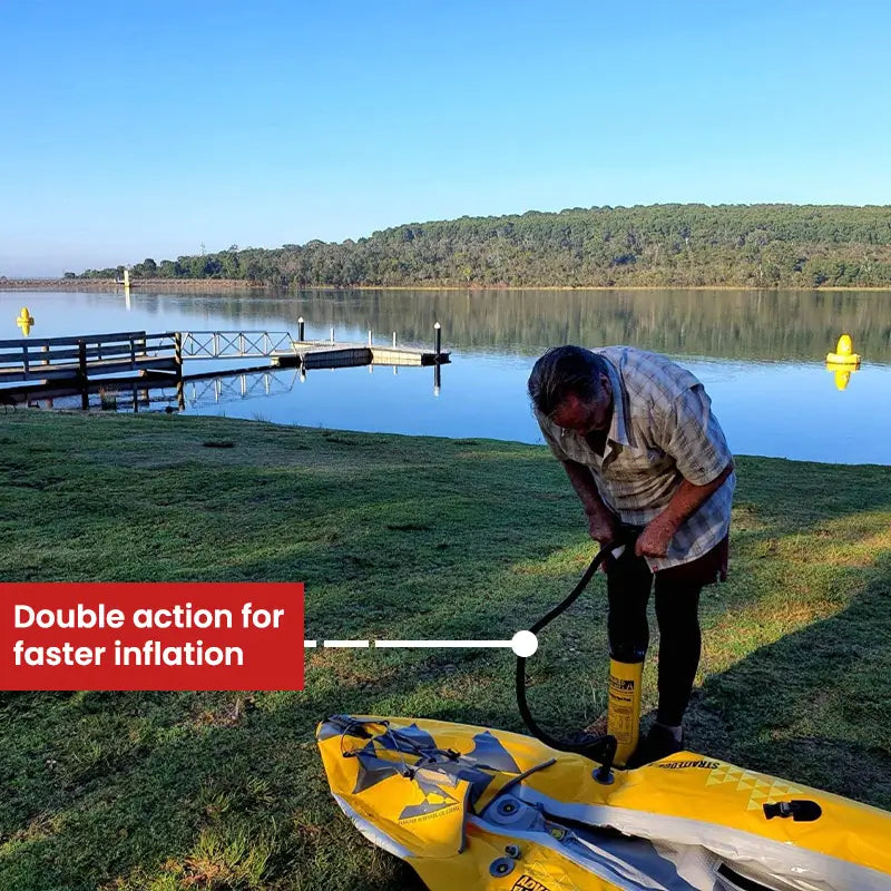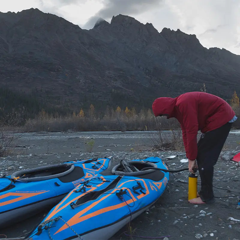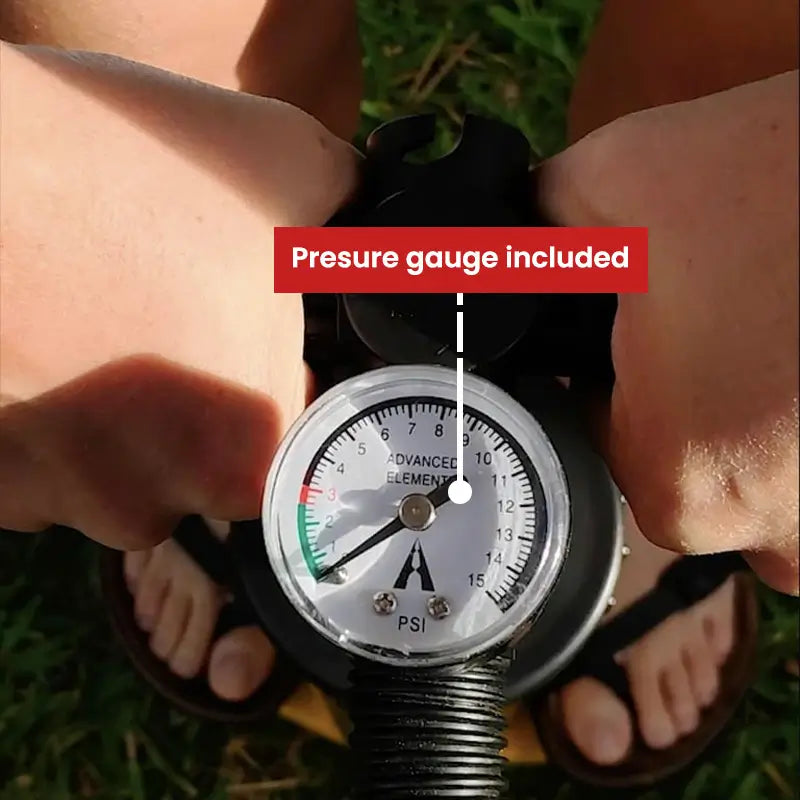 The high-flow Double Action Hand Pump With Gauge has all the right adapters for the Advanced Elements range of inflatable kayaks. Get out on the water quickly and with exactly the right pressure for optimal performance.