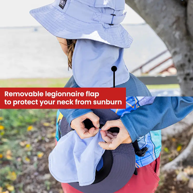 A sun-safe hat that stays ON when you are paddling, no matter what the wind is doing. Detachable legionnaire flap provides extra sun protection for your neck. Lightweight and quick-drying, this hat will keep you comfortable, protected and out on the water for longer.