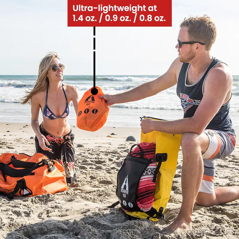 These lightweight and foldable dry bags are perfect for keeping your phone, your snacks and your towel dry… and separate from each other! Sizes: 3L, 5L and 10L all included.