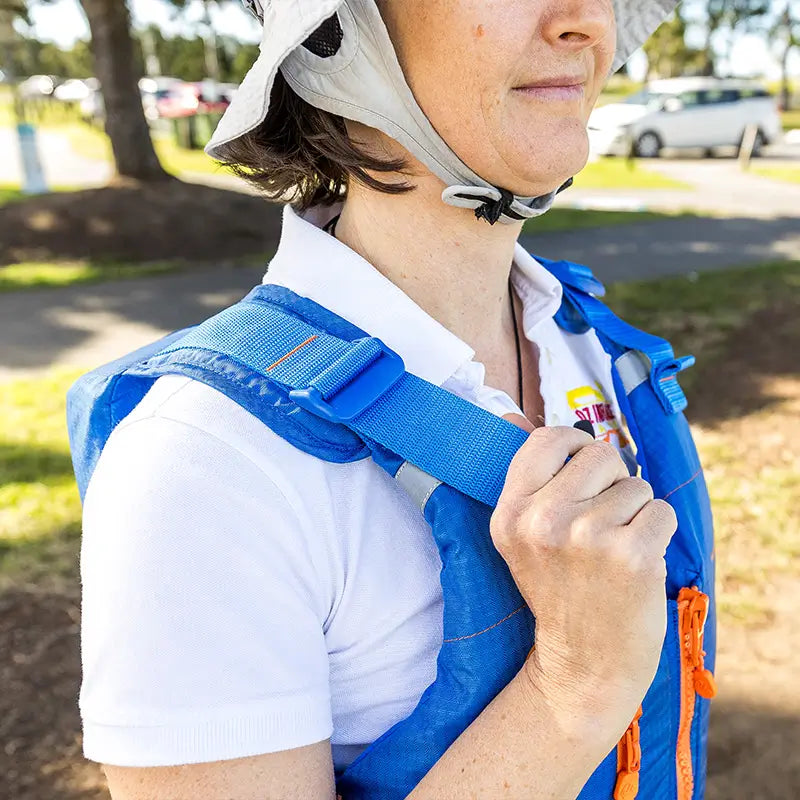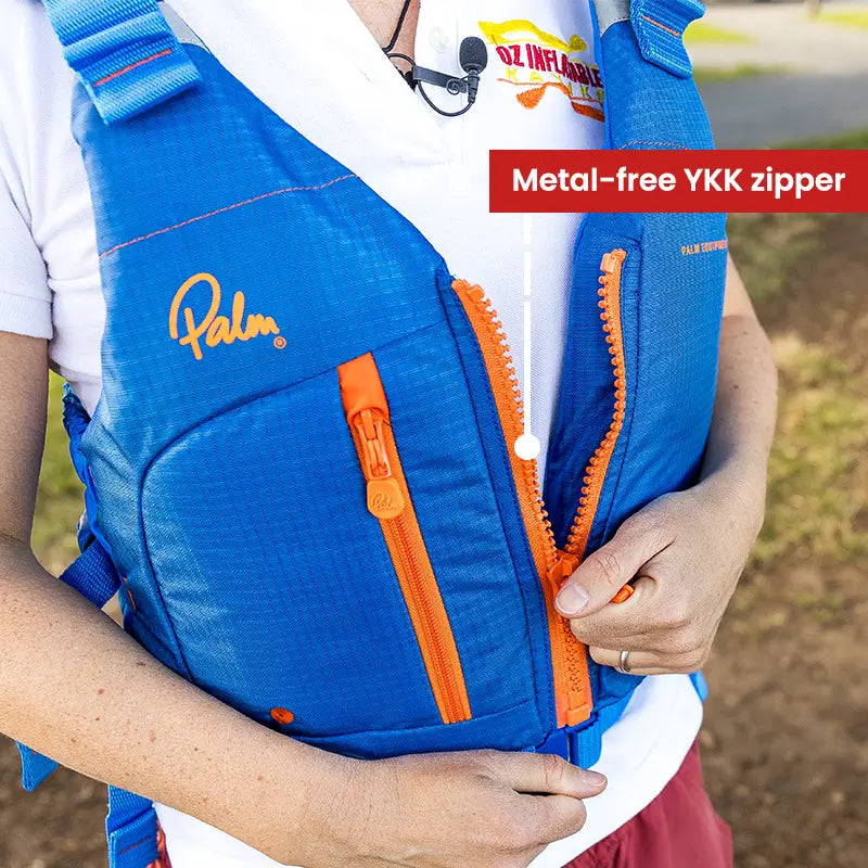 The streamlined Palm Meander High-Back PFD is perfect for our luxury high-backed seats on our inflatable kayaks. Low bulk with excellent freedom of movement, the Palm Meander is cool and comfy for kayaking. PFD Size Guide: